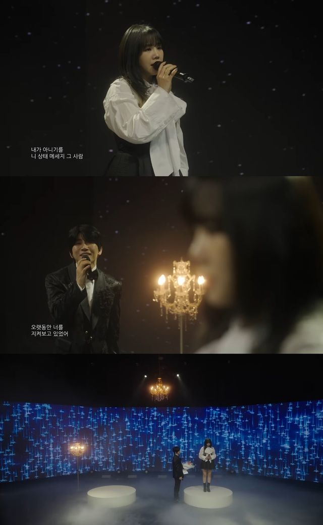 유성은은 15일 유브이 방(UV BANG) 유튜브 채널을 통해 공개된 '내가 아니기를' 라이브 클립에 출연, 금빛 샹들리에가 장식된 감미로운 무대 위에서 유세윤과 듀엣 무대를 펼쳤다.