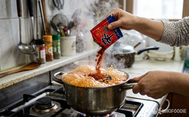 건더기 스프와 분말 스프는 넣는 시점이 다르다. 건더기 스프는 찬물 상태에서 먼저 넣는 것이 좋다. 건더기에 포함된 채소나 고기 성분이 물이 가열되는 동안 천천히 우러나오면서 국물에 깊이를 더해준다. 이 과정이 일종의 육수를 우리는 것과 같은 역할을 한다.
