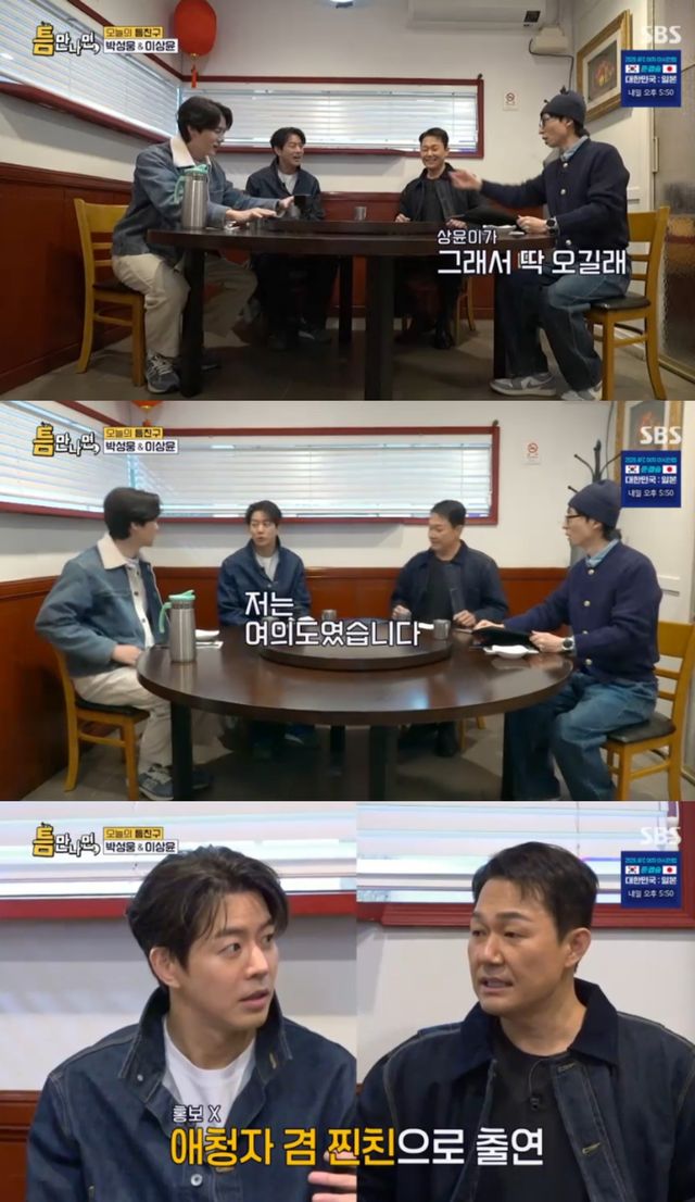 17일 방송된 SBS 예능 프로그램 '틈만 나면, 시즌4'에서는 '틈 친구'로 배우 박성웅, 이상윤이 출연해 유재석, 유연석과 함께 대치동을 찾아 '틈 주인'에게 행운을 선물했다.