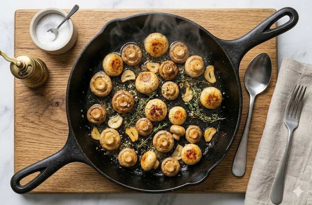 마늘과 버터의 풍미를 입혀 냄비에서 튀기듯 구워내면 쫄깃한 식감과 진한 감칠맛이 폭발한다. 고기보다 더 맛있는 마늘 버섯 요리의 핵심 비결을 정리했다.