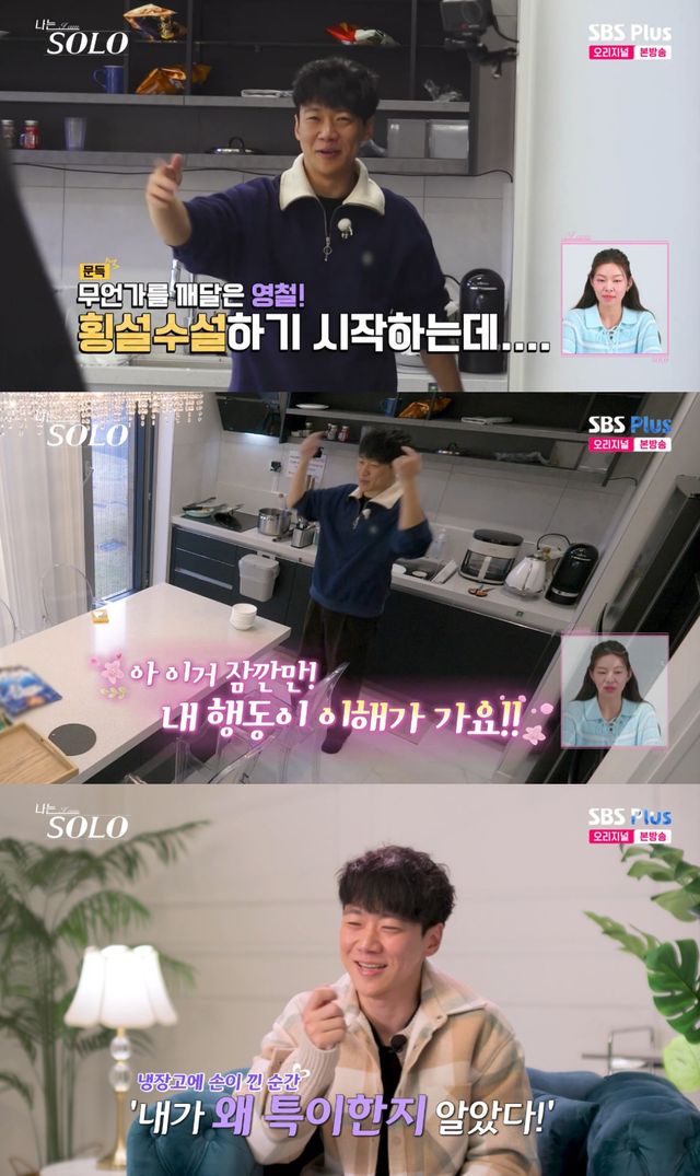 18일 방송된 ENA·SBS Plus '나는 SOLO'에서는 유독 내성적인 영철이 35년 만에 자신의 특이함을 깨닫는 모습이 그려졌다.