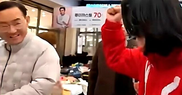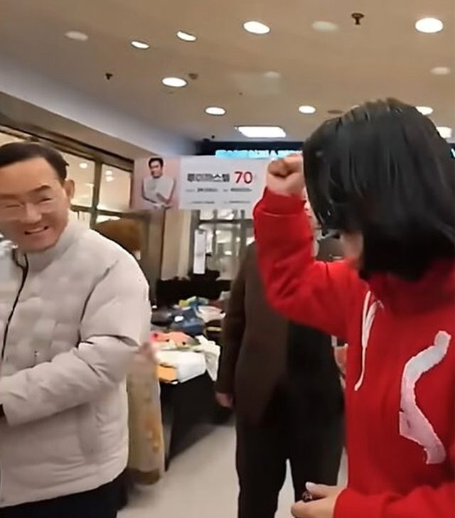 지난 13일 대구 시내에서 우연히 마주친 주호영 의원(왼쪽)과 이진숙 전 방통위원장. / 유튜브 갈무리