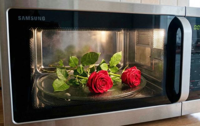 전자레인지에 장미꽃을 넣은 모습. 기사 이해를 돕기 위해 AI를 활용해 제작한 자료 사진입니다. 실제 모습과 다소 차이가 있을 수 있습니다.