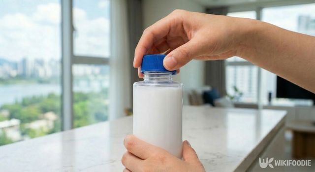 뚜껑을 끼운 뒤에는 로션 통을 거꾸로 세워두면 된다. 이때, 별다른 힘을 주거나 흔들 필요 없이 그대로 두는 것이 중요하다. 시간이 지나면서 통 안에 남아 있던 로션이 아래쪽으로 천천히 내려온다.