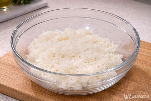 넓은 그릇에 밥 한 공기 반을 담고 공기가 잘 통하게 섞어주며 한 김 식힌다. 약간 따뜻한 정도가 되었을 때 재료를 섞어야 모양이 단단하게 잡힌다.