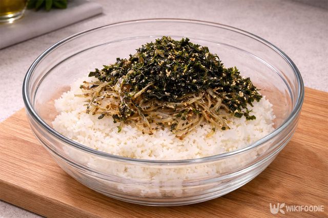 → 밥 1공기 반, 볶은 멸치 1/2컵, 김자반 반 줌, 소금 2꼬집, 통깨 1큰술, 참기름 1큰술
