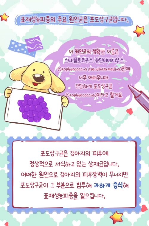 표재성농피증의 주요 원인균은 포도상구균입니다.