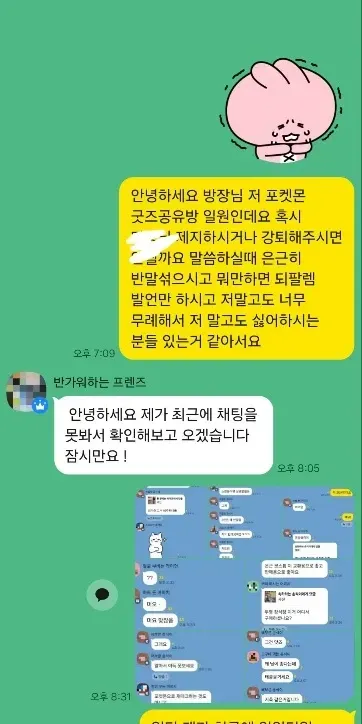총대매고 방장님한테 싫다고 얘기했더니 강퇴하고 다들 햅삐 엔딩