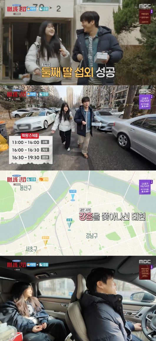 차태현은 딸을 차에 태우고 이동하며 혹시 정체가 들통나면 우리는 모르는 사이다라고 장난스럽게 압박했다. 이에 태은 양은 자다 일어난 딸을 데리고 뭐 하는 거냐며 엄마한테 다 말하겠다고 맞받아쳐 현실 부녀의 케미스트리를 뽐냈다. 투덜거림도 잠시, 태은 양은 강훈이 있는 건물 근처에서 무심한 듯 다가가 에그타르트 선물을 건네는 미션을 완벽하게 수행했다.