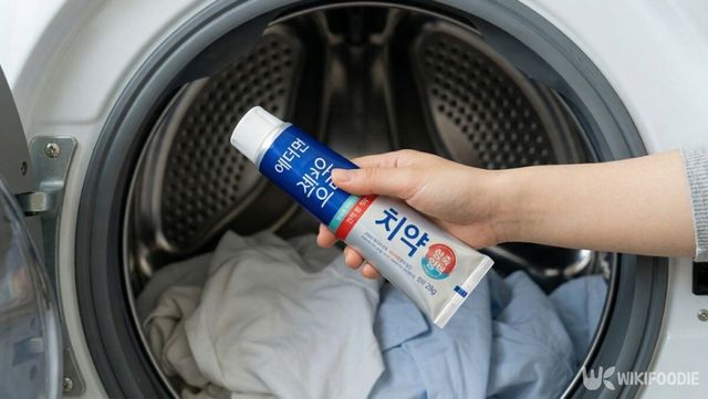 치약을 자를 때는 튜브를 이등분하거나 혹은 삼등분하여 안쪽 공간이 완전히 드러나도록 만드는 것이 좋다. 이렇게 단면을 넓게 노출해야 세탁기가 돌아가면서 물이 튜브 안으로 원활하게 들어가 치약을 깨끗하게 녹여낼 수 있다. 치약 속에 들어 있는 불소나 염소 성분은 세균을 억제하고 물때를 분리하는 데 도움이 된다.