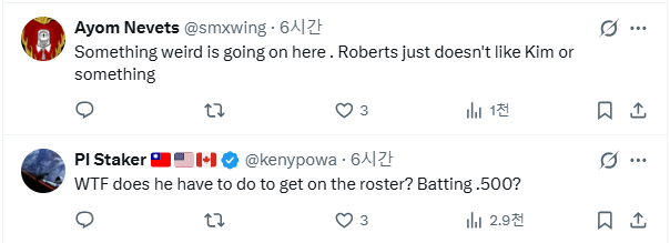 비판은 여기서 그치지 않았다. "왜 특정 선수는 감싸면서 김혜성에게만 이렇게 엄격하냐", "사사키 같은 선수에게는 기회를 주면서 김혜성에게는 너무 가혹하다"는 식의 '이중 잣대' 지적도 잇따랐다.