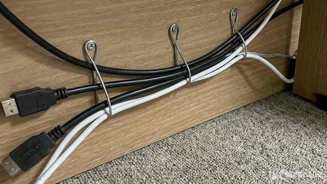 TV 뒤나 책상 아래 전선이 뒤엉켜 있을 때도 쓸 수 있다. 옷걸이를 짧게 잘라 작은 고리 형태로 만들고 여러 가닥의 전선을 모아 고리 안으로 통과시키면 전선이 한데 묶인다. 고리 크기를 전선 다발에 맞게 조절할 수 있고, 고리를 살짝 벌려 전선을 빼내는 것도 어렵지 않다.
