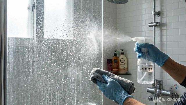 식초를 쓸 때는 물과 1대1 비율로 섞어서 분무기에 넣으면 된다. 식초 원액을 그대로 쓰면 냄새가 너무 강하고 대리석이나 일부 금속 소재에는 오히려 손상을 줄 수 있어서 희석해서 쓰는 것이 맞다. 분무기로 물때가 낀 곳에 골고루 뿌린 뒤 잠시 두면 식초 성분이 미네랄 침전물과 반응한다. 그 상태로 부드러운 천이나 스펀지로 닦아내고 물로 헹구면 된다.