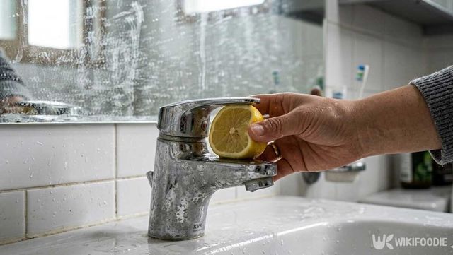 레몬을 쓸 때는 반으로 자른 단면을 수전이나 거울 표면에 직접 대고 문지르면 된다. 레몬즙이 표면에 고르게 묻어나면서 미네랄 침전물과 반응한다. 잠시 두었다가 물로 헹궈내면 되는데, 물때가 두껍게 쌓인 곳이라면 레몬즙을 바른 상태로 5분에서 10분 정도 두었다가 닦아내면 더 깨끗하게 제거된다.