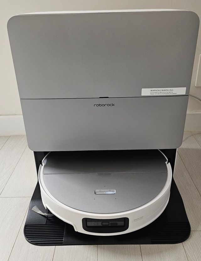 육아 중 청소 부담을 덜기 위해 로보락으로부터 'S10 맥스V 울트라'를 약 2주간 대여해 사용해 봤다. 흰색과 회색이 섞인 디자인이다. 집 안 인테리어를 해치지 않아 초기 느낌은 좋다.