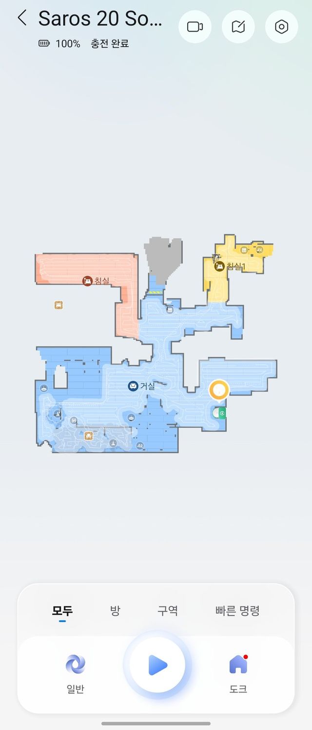 손이 갈 일이 거의 없었다. 진공 청소 모드 중에는 물걸레가 도크에서 자동으로 분리됐다. 청소하기 전과 후 자동으로 물걸레를 세척해준다. 도크 중앙에 빨간불이 들어왔을 때 정수통에 물을 채워주고 오수통을 비우는 것만 해주면 된다.