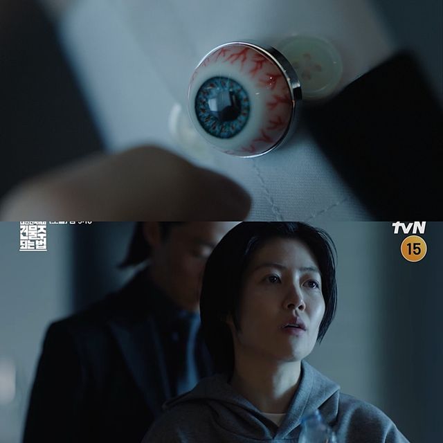심은경에게 ‘건물주’는 6년 만의 한국 드라마 복귀작이다. “촬영장에 가는 게 설레었다”고 스스로 말할 만큼 애정이 깊다. 그래서일까. 장면 곳곳에 디테일이 숨어 있다. 대표적인 건 1화 속 기수종(하정우)에게 건물 점유를 압박하는 통화 장면. 이때 요나의 오른쪽 셔츠 커퍼스에 핏발 선 기괴한 눈동자 장식이 눈길을 끈다. 이는 영화 ‘시계태엽 오렌지’에서 가져온 레퍼런스로 심은경이 직접 제안했다. 눈가의 붉은 음영역시 “섬뜩하면서도 아이 같은 면을 동시에 강조하고 싶었다”는 심은경의 열정이 들어간 디테일이다.