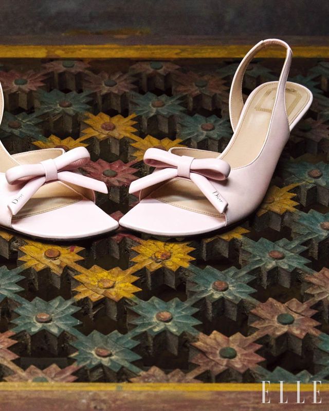 핑크 램스킨 디올 보우 슬링백 샌들은 Dior.