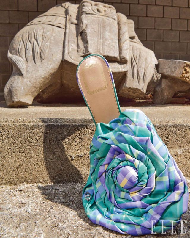 실크 타탄 디올 오로르 샌들은 Dior.