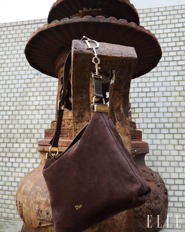 초콜릿 스웨이드 디올리 백은 Dior.