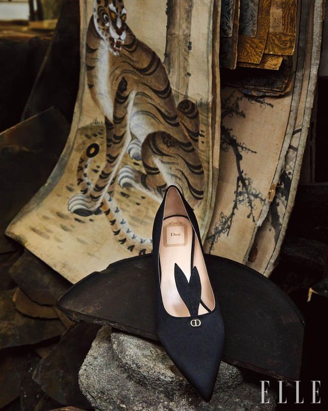 블랙 새틴 펌프스는 Dior.