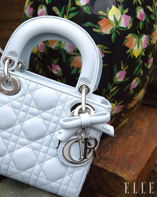 아이스 블루 까나쥬 램스킨 미니 레이디 디올 백은 Dior.