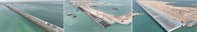 <이라크 알포 신항만 컨테이너터미널 안벽공사 현장의 연약지반 처리 및 매립공사가 진행된 모습>