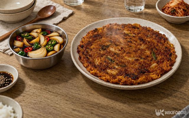 노릇하게 구운 전이나 바삭한 튀김을 먹을 때, 자칫 올라올 수 있는 기름진 맛을 단번에 잡아주는 '치트키'가 있다. 바로 아삭함이 살아있는 양파장아찌다. 어느 전이나 잘 어울리는 것은 물론, 남은 간장물에 전을 찍어 먹으면 그 풍미가 배가된다.