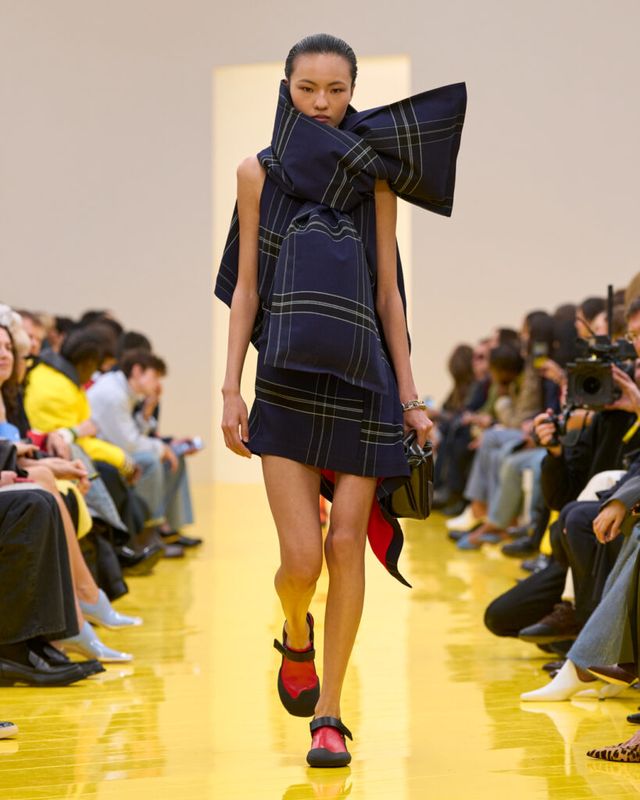 선명한 노랑으로 칠한 런웨이 바닥 위에 거대한 봉제 동물들이 앉아 있었다. 늘어진 귀의 개, 눈을 동그랗게 뜬 조개, 돌고래. 쾰른 베이스의 아티스트 코시마 폰 보닌이 만든 이 오브제들은 관객석에 나란히 자리를 잡고 쇼를 지켜보는 동반자인 동시에 전시의 대상이었다. 잭 매컬로와 라자로 에르난데스가 로에베에서 두 번째 시즌에 던진 메시지는 분명했다. 우리는 놀러 왔다.