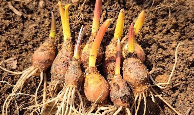 봄철 무릇 뿌리 부분 모습.무릇은 봄철에만 얻을 수 있는 귀한 자연 식재료이자 약초로 체내 필수 성분인 황을 공급하고 남성 건강 증진, 혈액순환 개선, 면역력 강화 등 다양한 효능을 지닌다. / 유튜브 '텃밭친구'