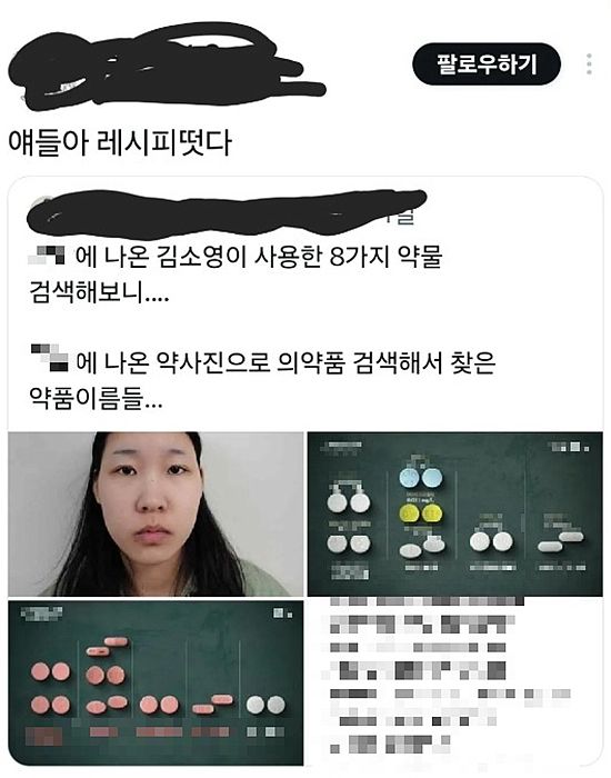 지난 24일, X(엑스, 옛 트위터)와 각종 온라인 커뮤니티에는 김소영이 범행에 사용한 것으로 알려진 약물의 종류와 이름을 구체적으로 정리한 게시물이 잇따라 올라왔다.
