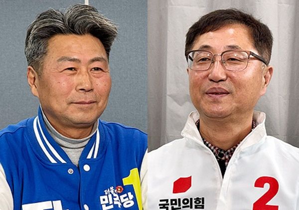 왼쪽부터 더불어민주당 장정훈 예비후보, 국민의힘 강재섭 예비후보.