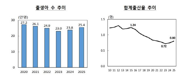 25일 국가데이터처와 저출산고령사회위원회(저고위)에 따르면 올해 1월 합계출산율은 0.99명으로 지난해 같은 기간 (0.89명)보다 0.10명 상승했다. 이는 월별 합계출산율 통계가 집계되기 시작한 2024년 1월 이후 가장 높은 수준이다.