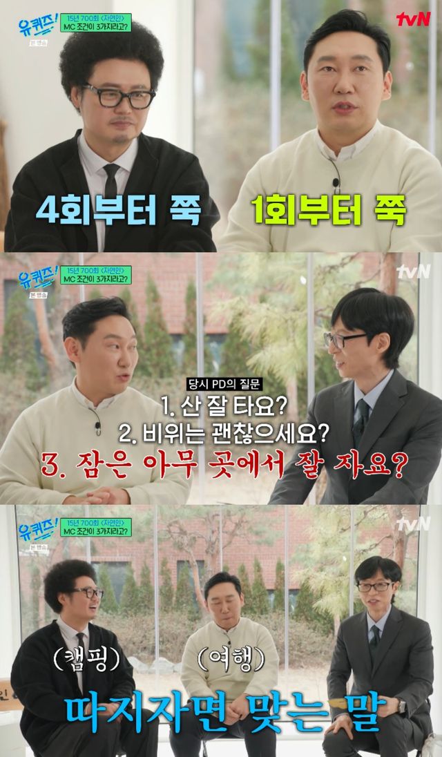 이어 "그런데 너한테 산을 잘 타는지, 비위가 강한지, 아무데서나 잘 자는지를 물어보더라. 다른거 다 필요없고 3개만 잘 하면 된다고 하더라"면서 웃었다.