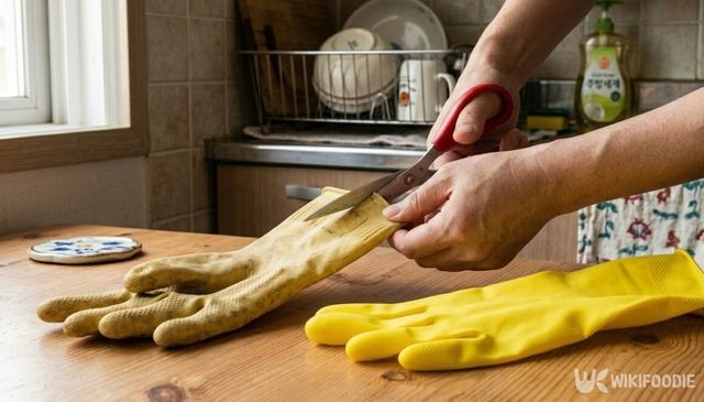라텍스 소재는 칼날 방향으로 힘이 쏠리는 성질이 있어 커터칼로 자르다 보면 손 쪽으로 미끄러질 수 있어 고무장갑을 자를 때는 커터칼보다 가위를 쓰는 것이 안전하다.