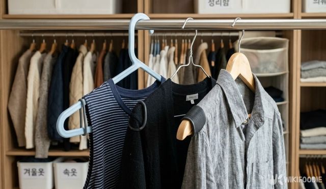 옷걸이 소재와 형태에 따라 고무 링을 끼우는 방식도 조금씩 달라진다. 플라스틱 옷걸이는 끝부분이 얇고 표면이 매끄러워 링이 잘 고정되는 편이고, 링을 끼운 뒤 손으로 살짝 눌러 위치를 맞춰주면 된다. 철제 옷걸이는 끝이 둥글게 말려 있는 경우가 많아 링이 그 안으로 빠지지 않도록 끝부분 바로 안쪽에 끼워 고정하는 것이 좋다. 나무 옷걸이는 표면 자체에 어느 정도 마찰이 있지만, 니트나 실크처럼 특히 미끄러운 소재를 걸어야 할 때는 고무 링을 추가하면 고정력이 확실히 달라진다.