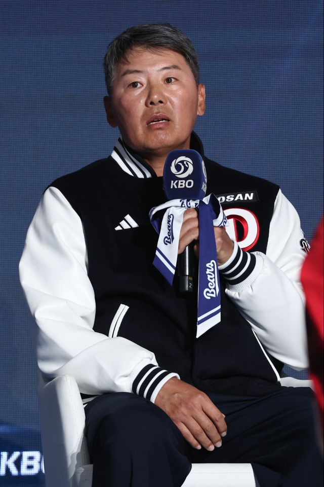 김 감독은 6일 서울 송파구 롯데호텔 월드에서 열린 2026 KBO 미디어데이 참석해 "2년 만에 현장에 복귀했다. 마무리 캠프부터 선수단에 확고한 목표 의식을 심어줬다"며 "두산이 명가 재건을 이루는 시작점이 되도록, 또 우승의 영광을 맛보고 싶다"고 말했다.