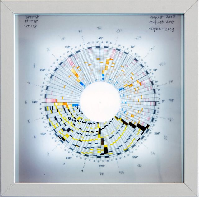 시간에 관한 데이터를 기하학적 구조와 색, 빛, 소리로 풀어내는 작업 방식이 궁금하다.