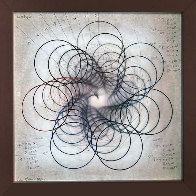 먼저 해와 달이 뜨고 지는 시간 데이터를 모으는 것에서 시작한다. 특정 장소와 기간을 설정한 뒤 일출과 일몰, 월출과 월몰 시간을 수집해 기하학적 구조로 변환하는 방식으로 작업한다. 작업 초기에는 시간을 선형이나 원형 구조로 표현했지만, 탐구 과정에서 점차 나선 구조로 확장해 시간의 흐름과 순환을 시각화하게 됐다. 더 나아가 하루의 시간 단위를 음과 코드에 대응해 소리로 번역하는 작업도 함께 진행하고 있다.