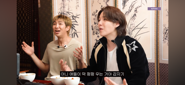 이를 지켜본 슈가는 “옆에 있었는데 갑자기 분위기가 격해졌다. 애들이 다 취해 있어서 왜 싸우는지도 모르는 상황이었다”며 “갑자기 울기까지 해서 ‘왜 이러지’ 싶었다”고 전해 웃음을 안겼다.