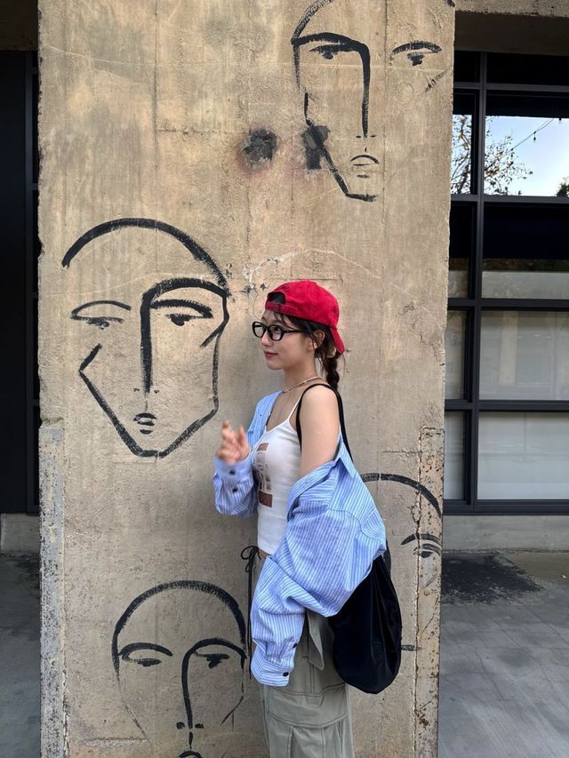 러블리즈(Lovelyz)의 정예인이 그래픽적인 패턴이 돋보이는 벽면을 배경으로, 강렬한 레드 캡과 무심한 듯 걸친 셔츠, 와이드 카고 팬츠를 매치하여 도회적이면서도 힙한 스트릿 아우라를 연출했습니다. 뒤를 돌아보며 한 쪽 다리를 드는 장난기 가득하고 역동적인 포즈는 그녀 특유의 밝은 에너지와 세련된 감각을 동시에 부각합니다.