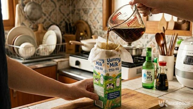 이럴 때 우유팩을 펼쳐서 도마 위에 깔아두면 식재료를 직접 올려 손질해도 도마 표면에 냄새나 물기가 닿지 않는다. 우유팩 내부 면이 코팅되어 있어 배춧물이나 고기 핏물이 스며들지 않고 그 위에서 머문다. 작업이 끝나면 우유팩만 그대로 쓰레기통에 버리면 되기 때문에 도마를 따로 씻어야 하는 번거로움이 사라진다.