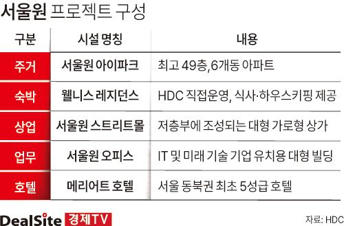 서울원 프로젝트는 광운대 일대 약 15만㎡ 부지에 주거시설을 비롯해 오피스, 쇼핑몰, 호텔, 공공시설 등을 조성하는 대형 복합개발 사업이다. 총 4조5000억원이 투입되며, HDC가 부지 매입부터 기획·시공·운영까지 전 과정을 맡는다. 단지 내 호텔 도입과 스마트 물류, AI 주거 서비스 등을 결합해 ‘라이프스타일 디벨로퍼’로의 전환을 노리는 정몽규 회장의 핵심 승부수로 평가된다.