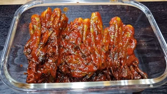 건조가 완료된 두릅은 준비한 양념에 넣어 골고루 무쳐준다. 이때 양념이 전체에 고르게 배도록 충분히 버무리는 것이 중요하다. 완성된 두릅 장아찌는 용기에 담은 뒤, 남은 고추장을 위에 덮어 공기와의 접촉을 줄여준다. 마지막으로 소금을 살짝 위에 뿌려주면 보관 기간을 더욱 늘릴 수 있다고 한다.