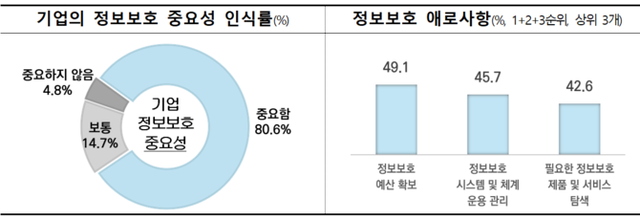 기업의 정보보호 중요성 인식률, 정보보호 애로사항표. ⓒ 과학기술정보통신부