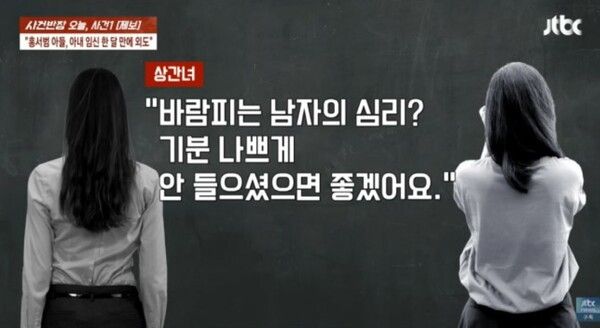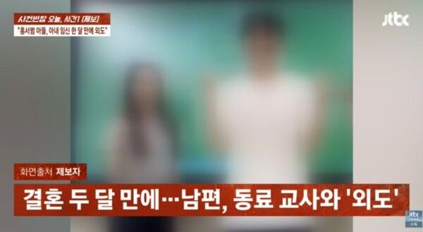 지난 26일 JTBC 사건반장은 홍서범·조갑경 아들, 아내 임신 한 달 만에 외도라는 제목의 영상을 통해 며느리 A씨의 제보 내용을 공개했다. 제보자 A씨에 따르면 2022년부터 동거를 거쳐 올해 2월 결혼식을 올린 두 사람은 신혼여행 직후 임신 사실을 확인했다. 그러나 행복해야 할 시기에 A씨는 남편 홍 씨와 기간제 교사 B씨의 외도 정황을 포착하게 됐다.