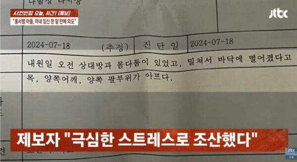 사건은 여기서 그치지 않았다. A씨는 남편에게 외도 사실을 추궁하자 홍 씨가 오히려 임신 5개월 차였던 자신에게 낙태를 요구하며 가출했다고 주장했다. 또한 학교로 찾아가 항의하는 과정에서 홍 씨가 자신을 밀쳐 손목과 허리를 다치게 했으며, 이러한 신체적 충격과 극심한 스트레스로 인해 결국 예정일보다 한 달 빠르게 아이를 조산하게 됐다고 털어놨다.