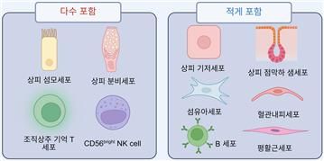 (그림 : 코브러싱 검체가 조직 검체보다 더 많이 또는 적게 포함한 세포 종류)