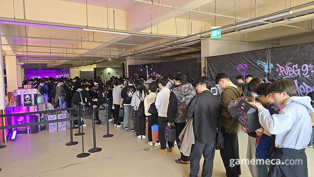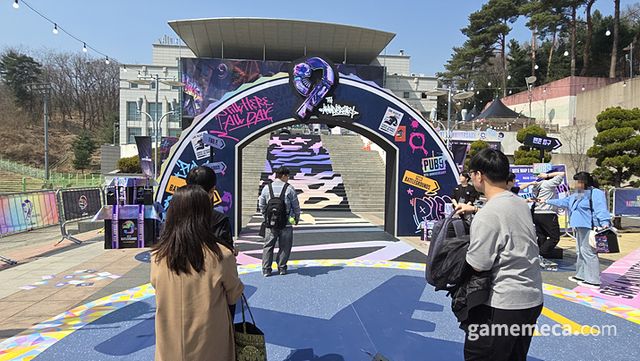 그런 배틀그라운드가 9주년 기념 팬 행사 '스틸 히어 올 데이(Still Here All Day)'를 고려대학교 화정체육관에서 열었다. 28일 오후 1시부터 5시까지는 체험형 부스와 미니게임으로 구성된 체험 프로그램이 메인으로 진행됐다. 지하 주차장은 핵심 체험존으로 구성됐고, 2층 야외에서는 각종 음식을 먹고 아트와 캐릭터를 관람할 수 있었다. 작년 8주년 체험 행사도 여러 미니게임이 알차게 준비됐는데, 9주년은 규모를 더 키우고 행사 역시 더 세밀하게 구성했다. 그 때문인지 수많은 팬들이 화정체육관을 찾았다.