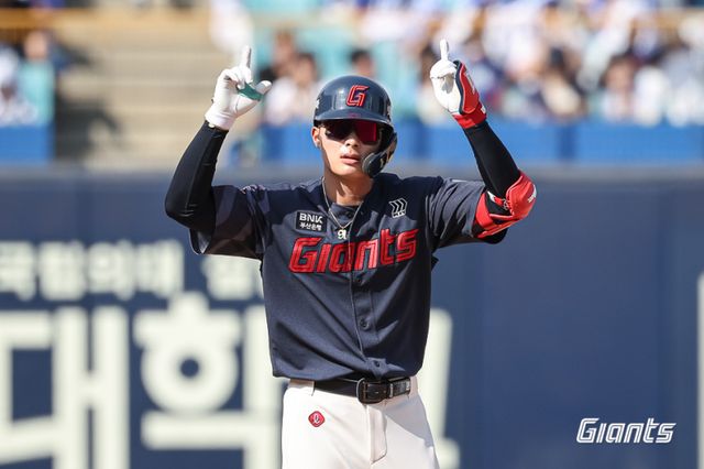 윤동희는 이날 홈런 포함 5타수 2안타 2타점 1득점 만점 활약을 펼쳤다. 특히 5회엔 외야 펜스 상단을 직격하는 2루타를 때려내며 장타만 2개를 생산해 냈다.